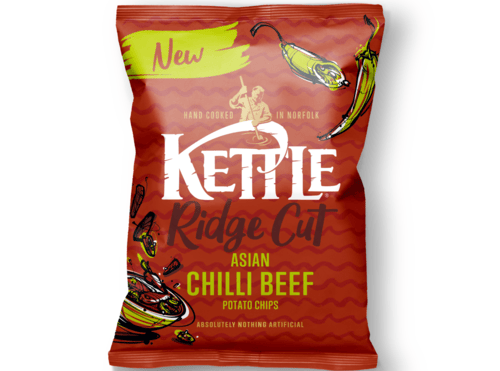 With a delicately balanced depth of flavour, KETTLE® Asian Chilli Beef features a hand cooked ridge cut potato chips with an Asian style Chilli Beef flavour seasoning.