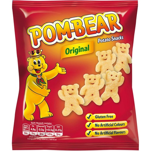 A deliciously light & crispy potato snack that simply melts in your mouth. The ready salted teddy bear shaped snacks are great fun to eat and really yummy too! Cooked with sunflower oil, gluten free and suitable for vegetarians.